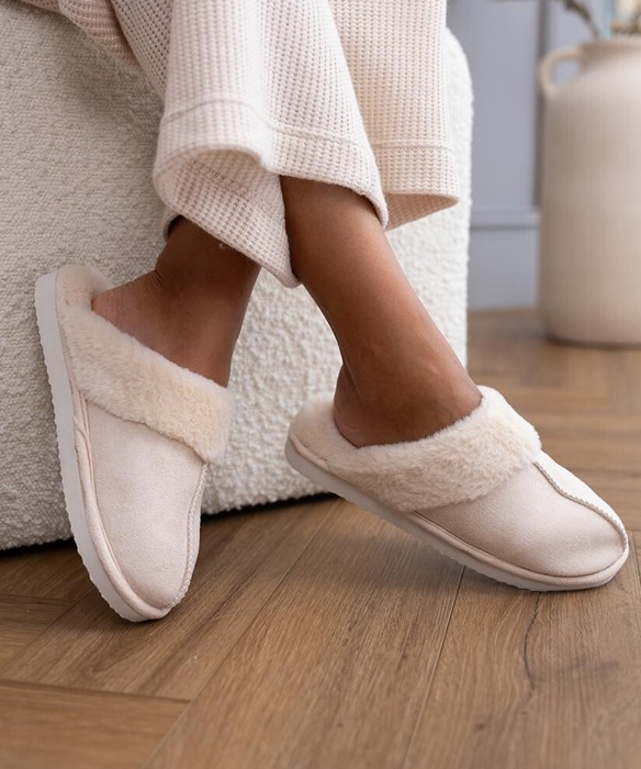 Miękkie i wygodne kapcie damskie z zakrytymi palcami od Sensis. Idealnie sprawdzą się na co dzień o każdej porze roku – kapcie całoroczne. Kapcie z imitacją zamszu. eleganckie kapcie po domu.