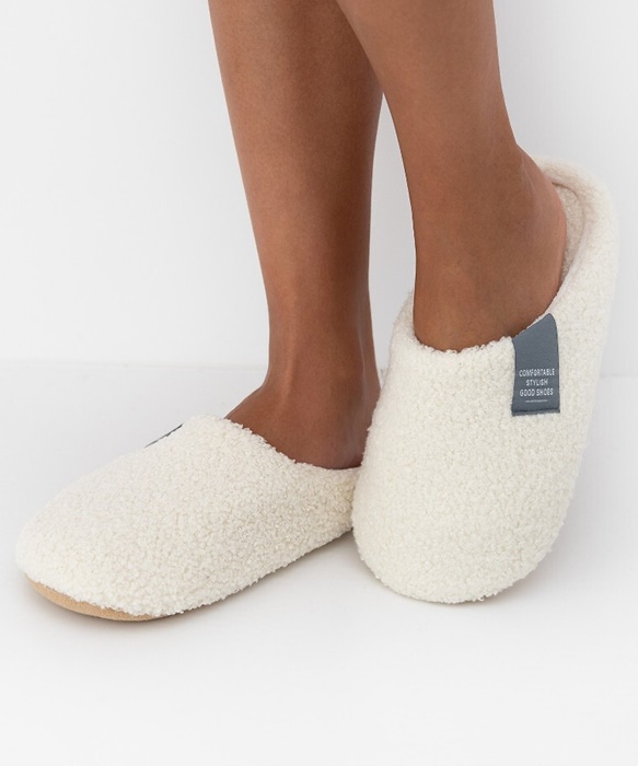 Wykonane z najwyższej jakości materiałów, nasze kapcie są niezwykle przyjemne w dotyku i zapewniają miękkość na Twoich stopach. Podeszwa jest gumowa, palce są zakryte, a dzianina miękka i puchata. Kapcie zapewniają komfort Twojej stopie przez cały dzień. Kapcie z dzianiny typu boucle. Mają ozdobną naszywkę.