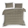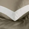Elegancka jednolita kawowa pościel wykończona białym brzegiem: