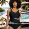 Kostium kąpielowy jednoczęściowy Fashion Sport czarny + biały geometryczny wzór:
