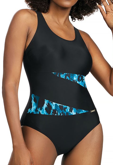 Kostium kąpielowy jednoczęściowy Fashion Sport czarny + niebieski wzorek w cętki: