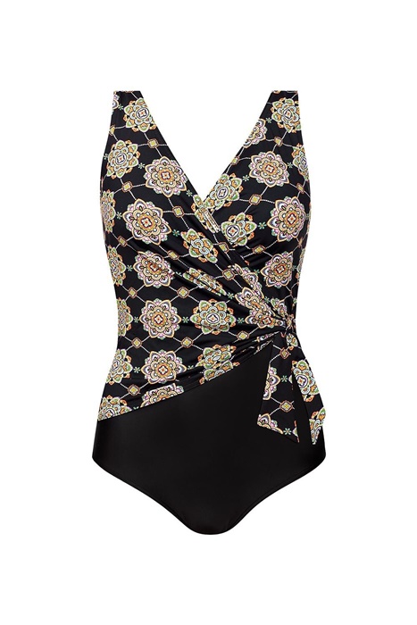 Kostium kąpielowy damski jednoczęściowy BEZ fiszbin. Wygodny i stylowy strój kąpielowy damski jednoczęściowy idealny i na basen i na plażę. Miseczki są usztywnione, ale bez fiszbin, gwarantują więc komfort noszenia i wygodę. Kostium kąpielowy na ramiączkach, z boku ze zdobnym przewiązaniem. Fason optycznie wyszczuplający sylwetkę. Szerokie ramiączka z regulacją.