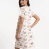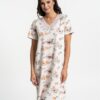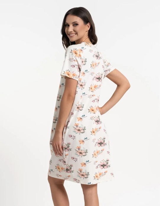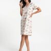 Koszula nocna bawełniana krótka w kolorze ecru w kwiaty.