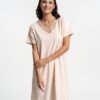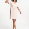 Koszula nocna bawełniana krótki rękaw przed kolano jasna brzoskwinia: