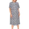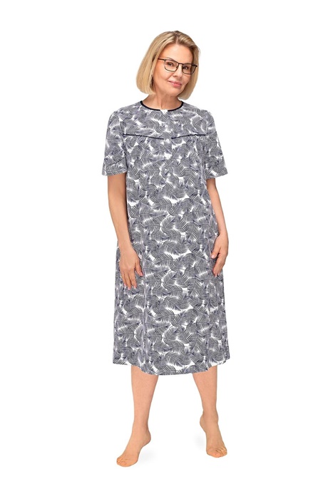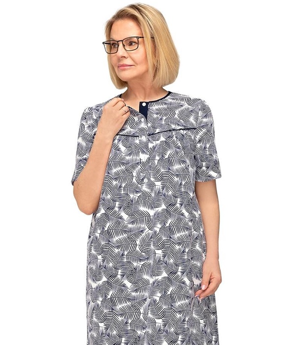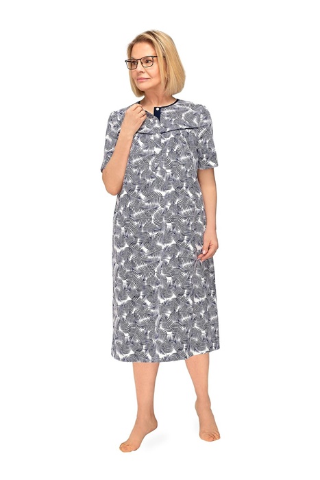 Koszula nocna do szpitala Martel rozpinana krótki rękaw granat listki: