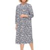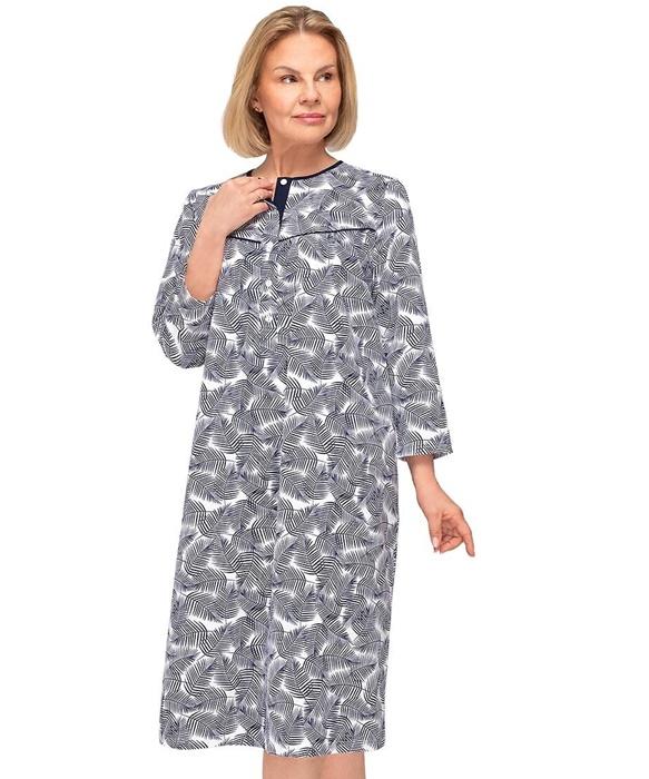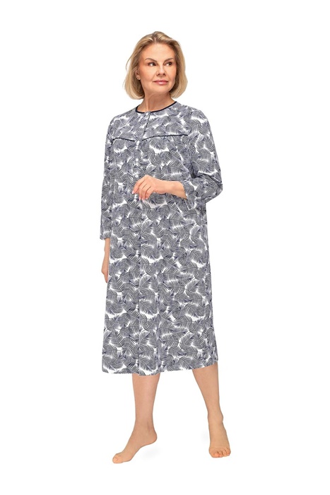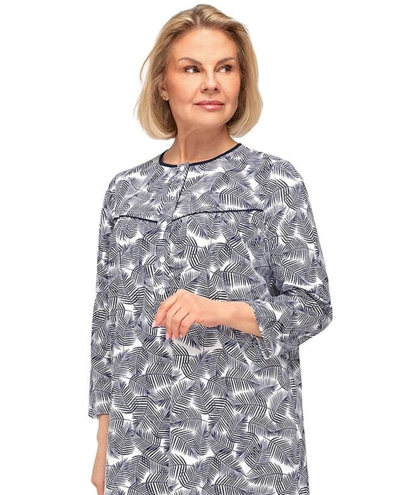 Koszula nocna do szpitala Martel rozpinana rękaw 3/4 granat listki