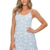 Koszula nocna Donna przed kolana na ramiączkach błękitna kwiaty:
