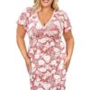 Koszula nocna Donna przed kolana w kwiaty wrzos róż Plus Size: