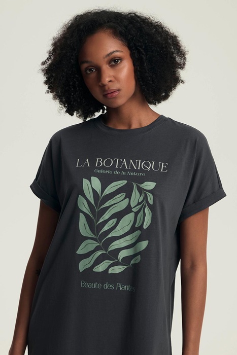 Koszula nocna bawełniana w kolorze szarym z botanicznym motywem.