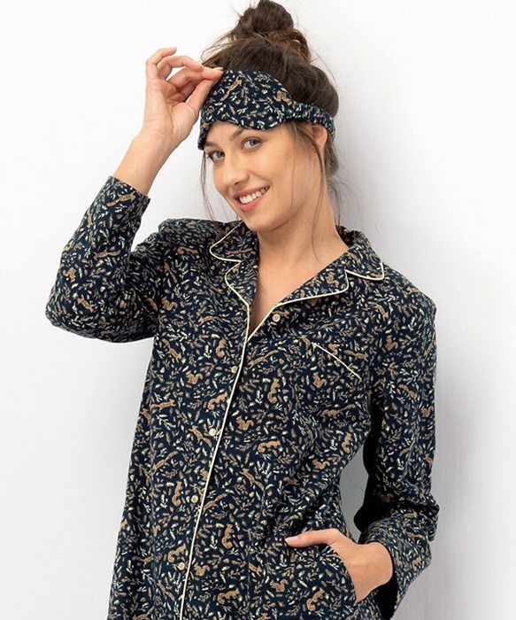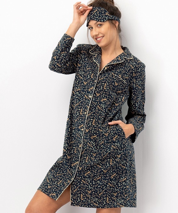 Koszula nocna KEY LND 706 B25 Flanelowa rozpinana granat: