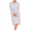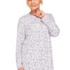 Koszula nocna Martel Długi rękaw rozpinana góra fioletowe kwiatki: