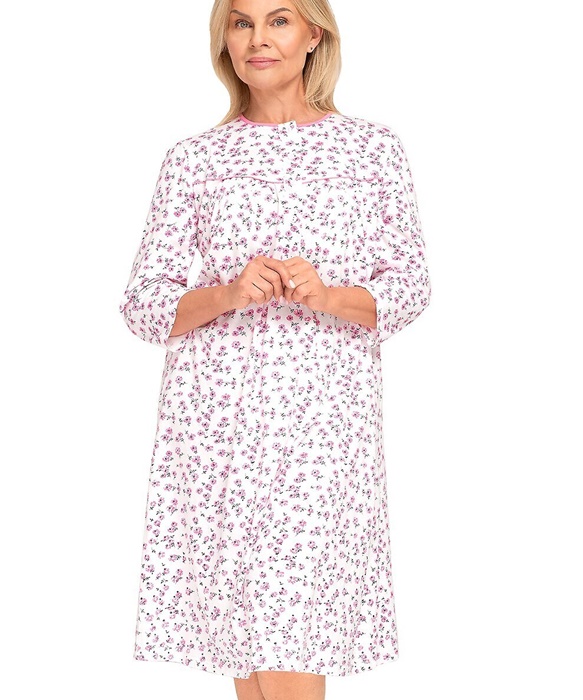 Koszula nocna Martel rozpinana u góry rękaw 3/4 różowe kwiatki: