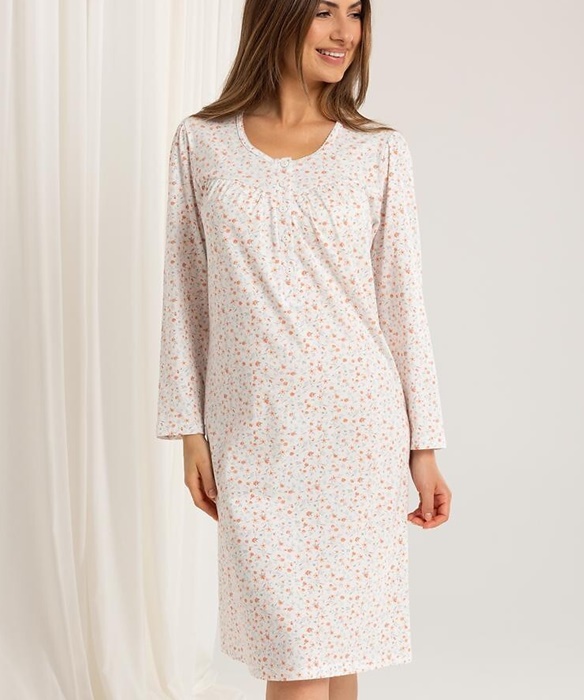 Koszula nocna Regina 015 z długim rękawem rozpinana morelowa:
