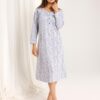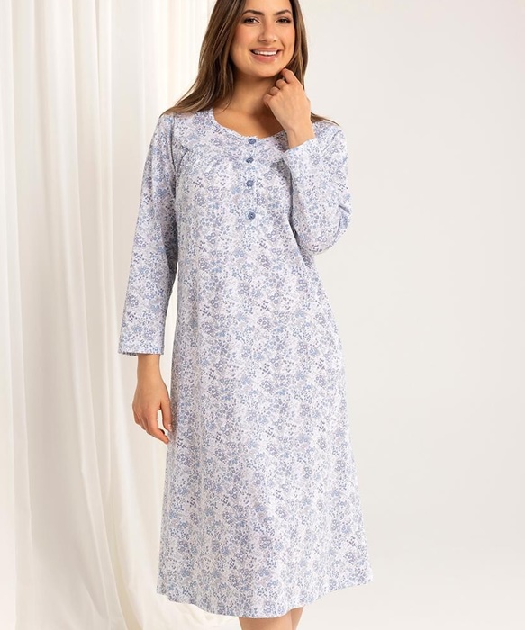Koszula nocna Regina 017 do łydek długi rękaw niebieski wzorek – u góry guziki rozpinane:
