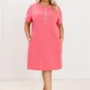 Koszula nocna Regina z krótkim rękawem rozpinana malinowa: