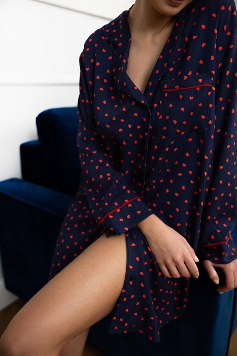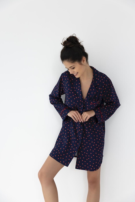 Koszula nocna Sensis Sophia rozpinana granatowa w serduszka: