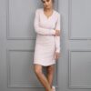 Koszula nocna jasno różowa z długimi rękawami ze ściągaczami. Koszula długości przed kolana, ma dekolt w łódkę ze zdobnymi guzikami. Fason koszuli dopasowany – podkreślający figurę. Koszula nocna idealna na okazje i na co dzień. Koszula nocna z materiału o sturturze wafla. Koszula nocna ze 100% bawełny.