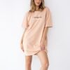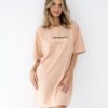 Koszula nocna bawełniana z luźnymi krótkimi rękawami. Koszula długości przed kolana, ma dekolt okrągły. Koszula nocna w kolorze karmelowego beżu, idealna na co dzień jako koszula nocna jak i jako długa luźna koszulka po domu.