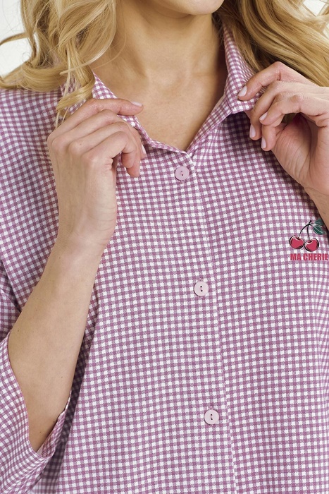 Koszula nocna Taro Joliee 3436 cała rozpinana kratka różowa: