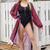 Tunika plażowa – długie Pareo damskie kolorowe – bordo paski.