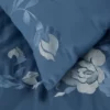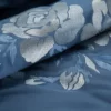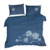 Satynowa gładka Pościel Eurofirany w kolorze niebieskim z haftowanymi różami: