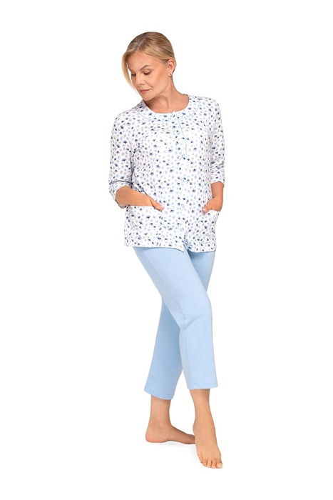 Piżama damska 3/4 Martel Maria II 201 rozpinana Listki błękit:
