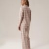 Flanelowa Piżama damska z długimi spodniami i długim rękawem. Koszulka od piżamy ma dekolt w serek z kołnierzykiem i jest zapinana na guziki. Piżama damska uszyta jest z naturalnej, wysokiej jakości miękkiej flaneli bawełnianej (bawełna 100%).