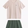 Piżama damska z krótkimi spodniami i krótkim rękawem. Bluzka od piżamy ma okrągły dekolt. Piżama damska uszyta jest z naturalnej, wysokiej jakości miękkiej bawełny.