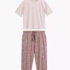Piżama damska Atlantic krótki rękaw spodnie 3/4 pudrowa: