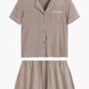Piżama damska rozpinana z krótkimi spodniami i krótkim rękawem. Koszulka od piżamy ma dekolt w serek z kołnierzykiem i jest zapinana na guziki. Piżama damska uszyta jest z modalu.