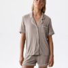 Piżama damska rozpinana z krótkimi spodniami i krótkim rękawem. Koszulka od piżamy ma dekolt w serek z kołnierzykiem i jest zapinana na guziki. Piżama damska uszyta jest z modalu.