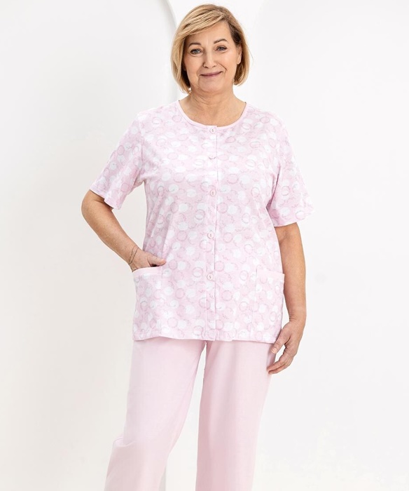 Piżama damska bawełna Regina krótki rękaw Rozpinana różowa: