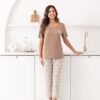 Piżama damska bawełna Regina krótki rękaw spodnie 7/8 brązowa: