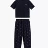 Piżama damska ze spodniami 3/4 długości i krótkimi rękawami. Bluzka od piżamy ma okrągły dekolt. Spodnie piżamy rybaczki w ciekawy wzorek. Piżama damska uszyta jest z naturalnej, miękkiej bawełny.
