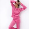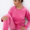Piżama damska ciepła długa Sensis Charlie różowa miękka dresowa: