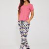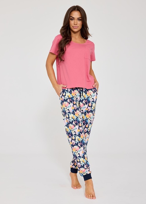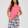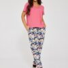 Piżama damska Cornette w kolorze różowym z kolorowymi spodniami.