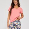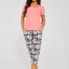 Piżama damska Cornette krótki rękaw spodnie 7/8 koral kwiaty: