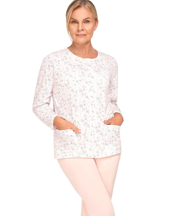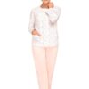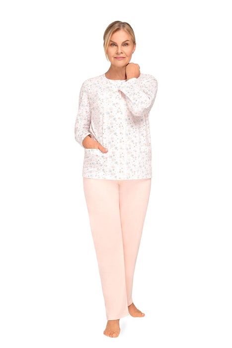 Piżama damska długi rękaw Rozpinana pudrowa morela: