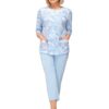 Rozpinana Piżama damska z rękawami długości 3/4 oraz długimi spodniami, długości 7/8. Bluzka od piżamy ma okrągły dekolt, z boku praktyczne kieszonki i jest zapinana na guziki. Spodenki od piżamy mają długość 7/8 (rybaczki). Piżama damska Martel uszyta jest z miękkiej, wysokiej jakości 100% bawełny.