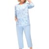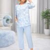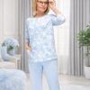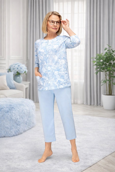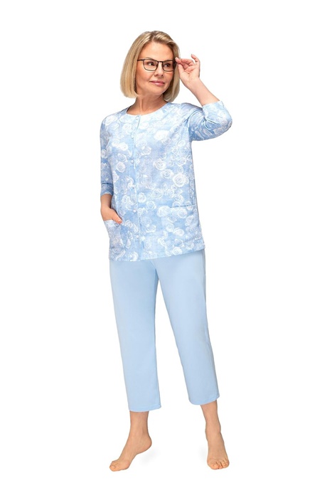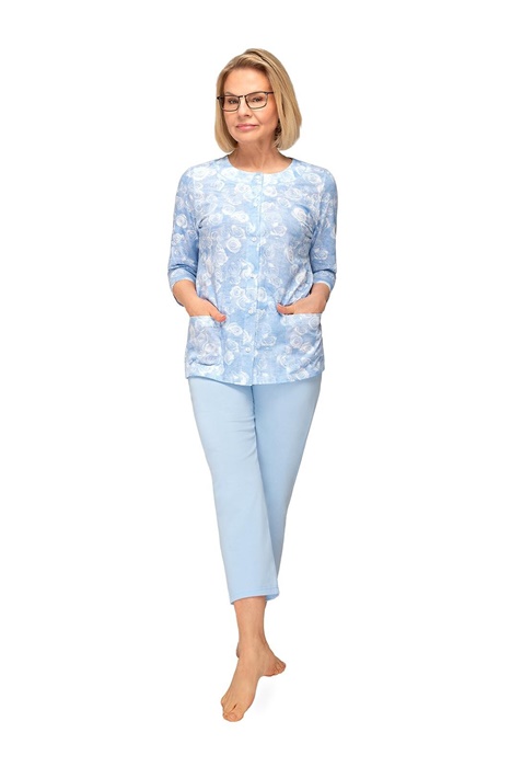 Piżama damska do szpitala Martel rękaw 3/4 Rozpinana błękit róże: