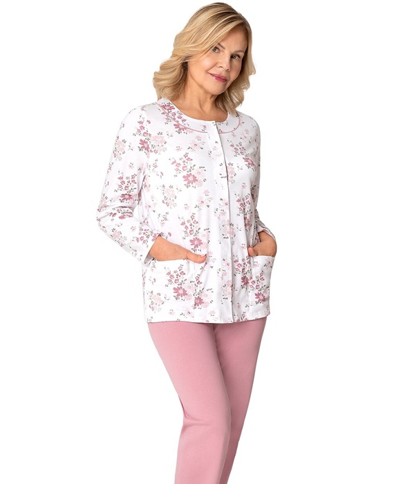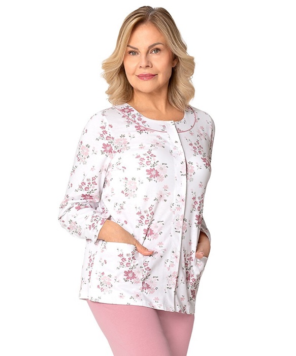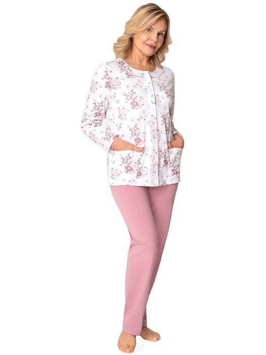Piżama damska do szpitala Martel Rozpinana Długi rękaw brudny róż: