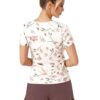Piżama damska Donna z bluzką w kwiatki z krótkim rękawem i krótkimi spodenkami z nogawkami wykończonymi falbanką. Bluzka od piżamy ma okrągły dekolt. Spodnie to krótkie szorty ozdobione kokardką. Piękna piżama damska w kolorze ecru brąz z wiskozy.