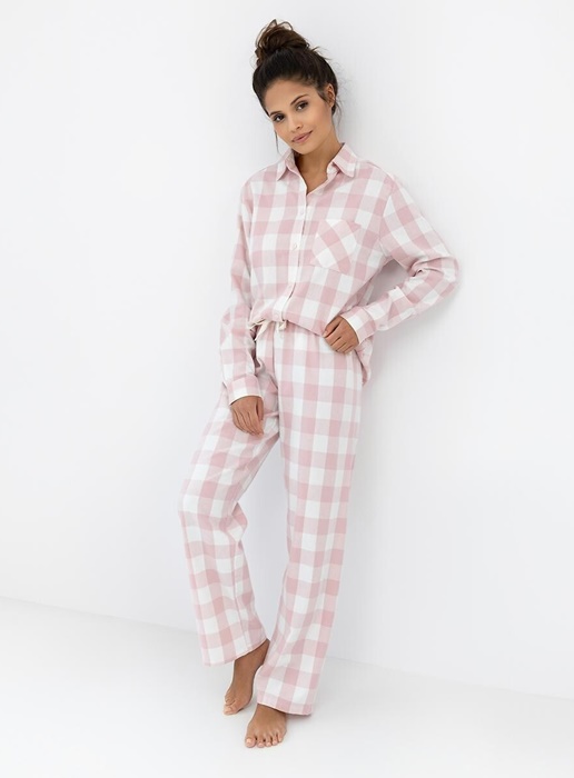 Piżama damska flanelowa Sensis Marley rozpinana kratka róż:
