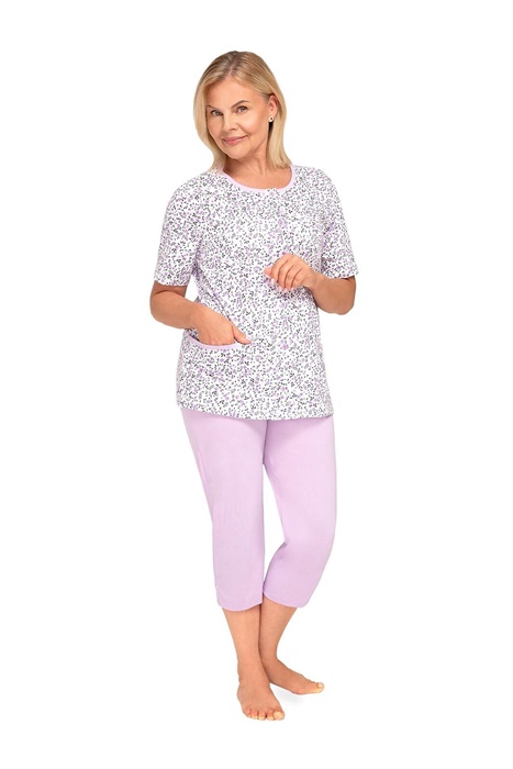Rozpinana piżama damska do szpitala czy po domu – piżama Kasia ma krótkie rękawy bluzki oraz spodnie długości 3/4. Bluzka od piżamy ma okrągły dekolt, z boków praktyczne kieszonki oraz jest zapinana na guziki. Spodenki od piżamy mają długość 3/4 (rybaczki). Piżama damska Martel Kasia uszyta jest z delikatnej, wysokiej jakości 100% bawełny.