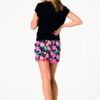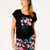 Piżama damska KEY z krótkim rękawem i krótkimi spodenkami. Bluzka od piżamy ma okrągły dekolt. Wzorzyste szorty od piżamy po bokach mają kieszenie. Czarna krótka piżama damska w kolorowy wzór. Piżama damska KEY uszyta jest z naturalnej, wysokiej jakości miękkiego bambusa. Krótka bambusowa piżama damska na wiosnę i lato.