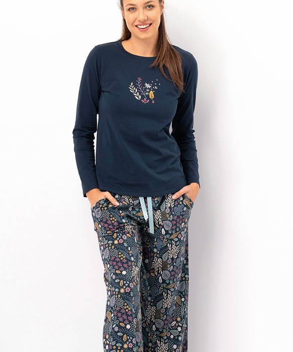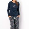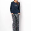 Piżama damska KEY LNS 571 długi rękaw szeroka nogawka granat: