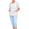 Wygodna i piękna rozpinana piżama damska Maria I ma krótkie rękawy bluzki oraz spodnie rybaczki, długości 3/4. Bluzka od piżamy ma okrągły dekolt, z boków praktyczne kieszonki oraz jest zapinana na guziki. Spodenki od piżamy mają długość 3/4 (rybaczki). Piżama damska Martel Maria I uszyta jest z delikatnej, wysokiej jakości 100% bawełny.