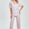 Piżama damska Taro z krótkim rękawem i długimi spodniami. Bluzka od piżamy ma dekolt w szpic z kołnierzykiem i jest zapinana na guziki. Piżama damska uszyta jest z miękkiej, wysokiej jakości 100% bawełny. Luksusowy krój piżamy damskiej sprawia że jest to piżama elegancka rozpinana.