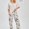 Piżama damska krótki rękaw spodnie 7/8 Taro beż magnolie: