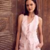 Piżama damska lniana Sensis wiązana Len + bawełna biało różowa: